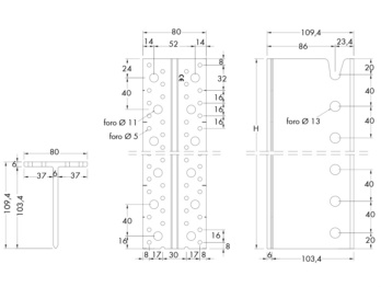 Numero fori fianco verticale nJ / fianco orizzontale nH | 7 / 78 PZ |
