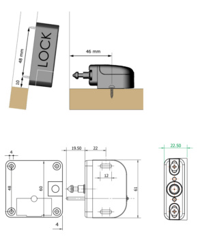 Attenzione: il funzionamento della serratura è garantito solo se applicato su materiali non conduttori (es. legno, materiale sintetico)