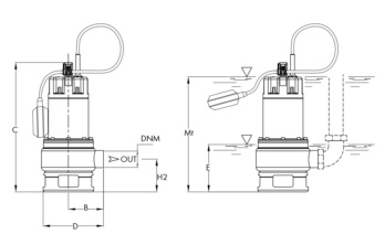 Il cavo del galleggiante può essere fissato ad altezze diverse per avviare la pompa al livello del liquido