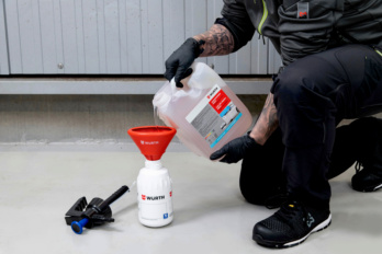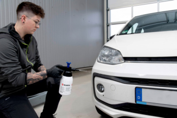 Spruzzare completamente il prodotto non diluito sulle superfici da trattare. A seconda del livello di sporcizia, attendere 3-5 minuti affinché il prodotto abbia effetto, come indicato dalla colorazione viola. Quindi risciacquare accuratamente con acqua pulita o lavare il veicolo. In caso di residui ostinati, ripetere il trattamento e strofinare con una spugna, se necessario.