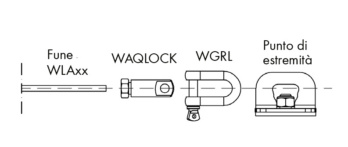 Per ogni tratta di fune deve essere obbligatoriamente utilizzato un kit di intestatura WLAKIT o, con i punti di ancoraggio da lamiera grecata WCLMxx e WCLMxxR, un kit di intestatura WLAKITLM