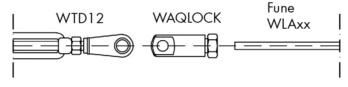 Tagliare a misura ed intestare l’altro estremo della fune utilizzando il secondo attacco bicono WAQLOCK presente nel kit di intestatura, dunque collegarla al tenditore WTD12