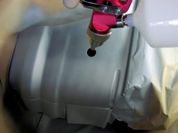 Mischung nach Gewicht: 10 : 1 mit Grundierungshärter mit Acrylverdünnung 15 - 20 % je nach Schichtdicke. Bis 10 % mit 2K-Acryllacken einfärbbar.Verarbeitungsgeräte:Pinsel, Rollenwalzen oder Lackierpistole, Düsengröße mind. 1,4 mm.