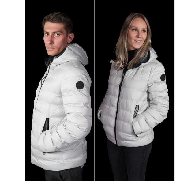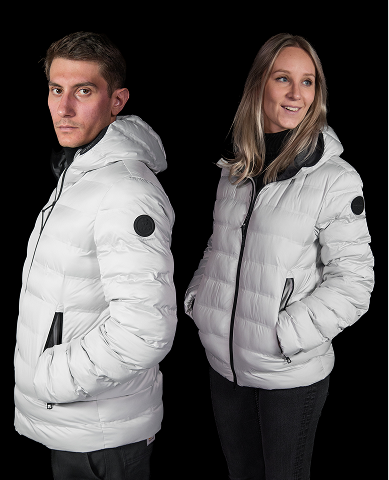 Il modello è realizzato in tessuto tecnico resistente all’acqua e con un'imbottitura sintetica. Tutti i tessuti sono riciclati a dimostrare il nostro impegno per il consumo consapevole. Si caratterizza per l'innovativa trapuntatura senza cuciture, i bordi in lycra per la massima aderenza e le zip impermeabili che enfatizzano il design funzionale del capo.